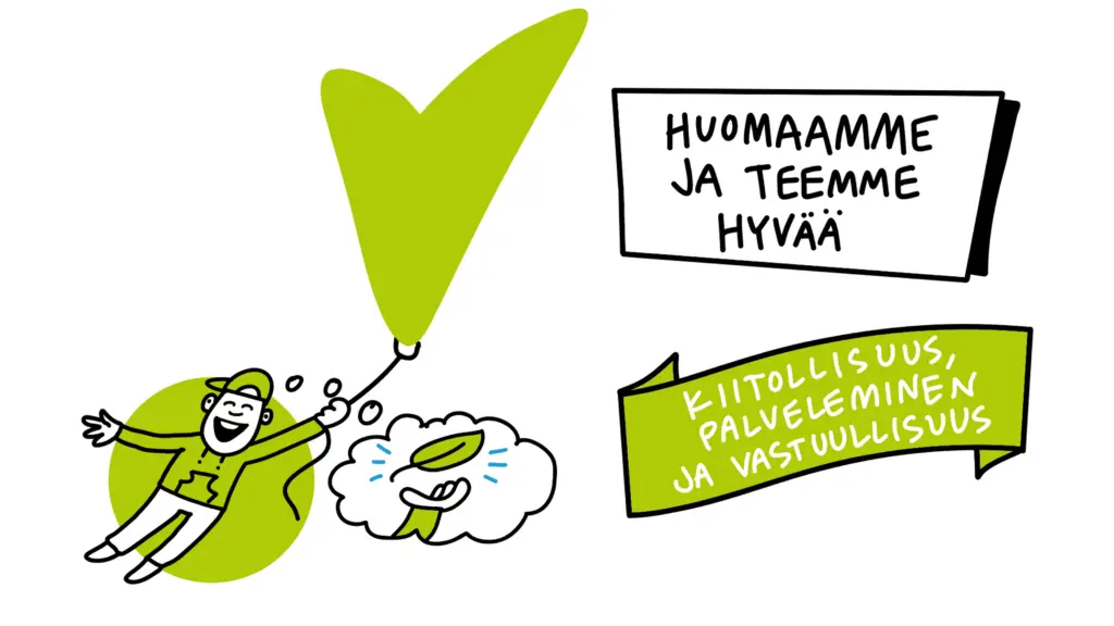 Huomaamme ja arvostamme hyvää elämässämme ja opettelemme kiitollista elämänasennetta. Osoitamme myötätuntoa ja teemme ystävällisiä tekoja. Opettelemme kantamaan vastuuta itsestämme, toisistamme ja ympäröivästä maailmasta. Jätämme hyviä jälkiä ympärillemme niin yksilöinä kuin yhteisönä.