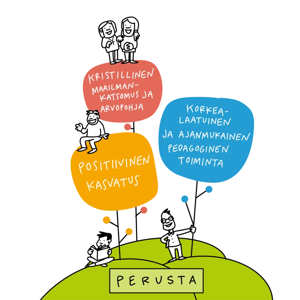 Kristillinen maailmankatsomus ja arvopohja muodostavat perustavanlaatuisen kivijalan koulumme koko toiminnalle. Ne ilmenevät koulumme toiminta-ajatuksessa ja kasvatustavoitteissa sekä ovat vahvasti läsnä koulumme arjessa ja toimintakulttuurissa. Koulutyön tavoitteena on avata näkökulmia elämän merkityksen ja tarkoituksen ymmärtämiseen ja tarjota aineksia terveen ja tasapainoisen minäkuvan rakentumiseen sekä moraaliseen ja eettiseen kasvuun.